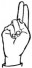 На ћирилици написано РАДНА ЖИВКОВИЋ састоји се из 13 слова [?]. Исписано ћириличном једноручном азбуком за глувонеме: